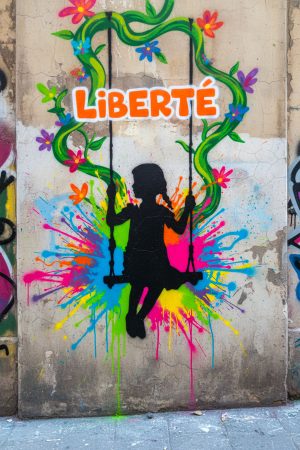 • Two children united by creativity and boldness. This child graffiti stencil blends tenderness, freedom, and the vibrant energy of street art in a scene full of character.Artwork created with the Children Graffiti Stencil, blending innocence and urban energy. The raw contrasts and street art touches evoke the spontaneity of city walls while conveying simple, authentic emotion.
