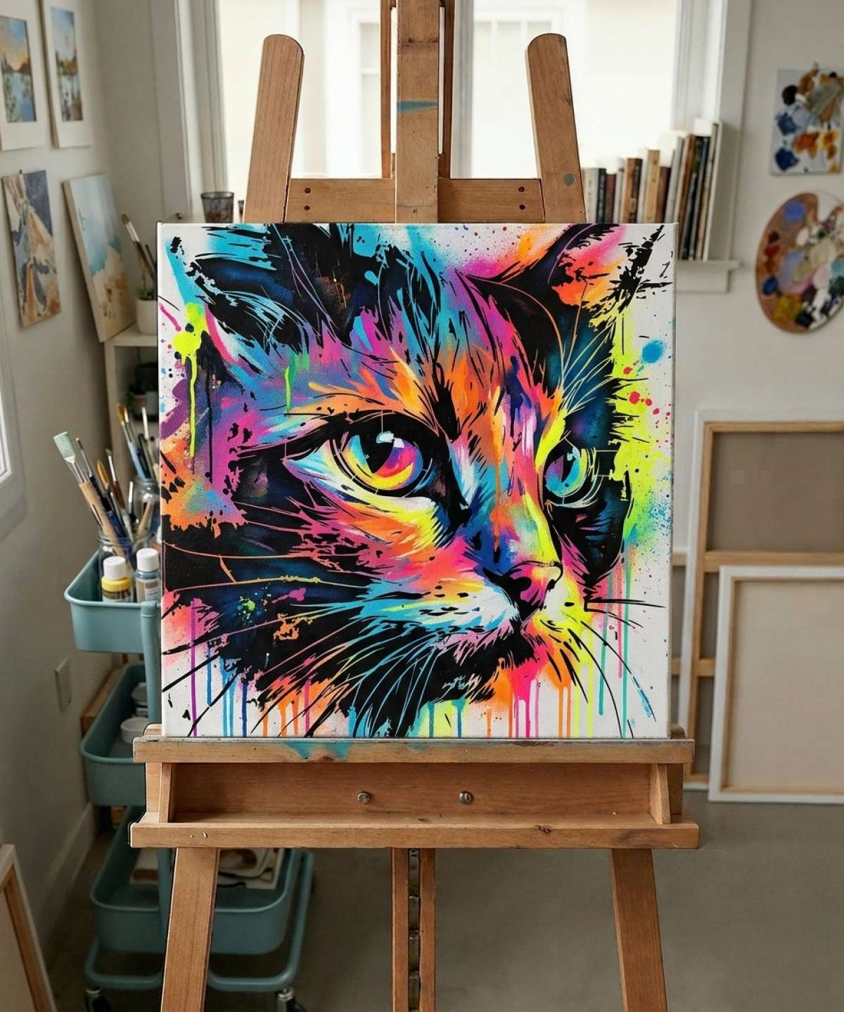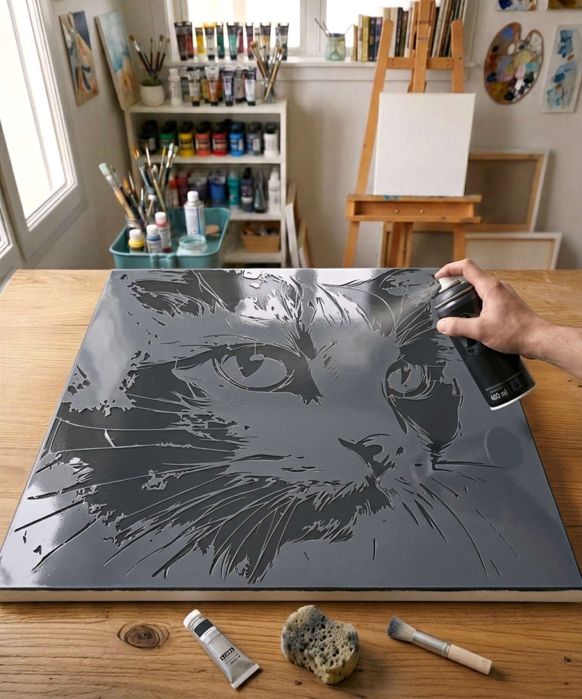 Abstract Cat Face Stencil, reusable and high-quality. Available in multiple sizes for artistic creations on various surfaces.