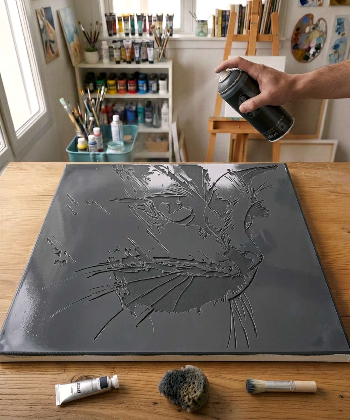 Abstract Feline Stencil, reusable and high quality. Available in multiple sizes for creating on various surfaces with a professional finish.