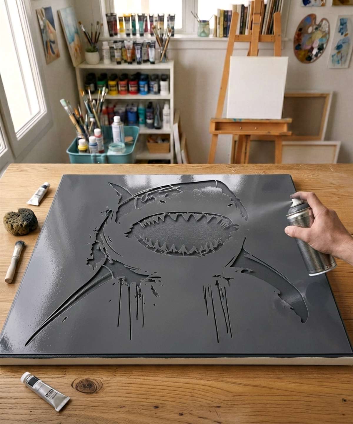 This stencil is ideal for use on a wide variety of surfaces, including walls, canvases, paper, wood, and textiles. Whether you're creating large mural pieces or more intimate artworks, this stencil delivers a dynamic and expressive result. The Abstract Shark Stencil’s design offers great flexibility in styles and techniques, allowing artists to explore different approaches while capturing the beauty of this marine animal in all its splendor.