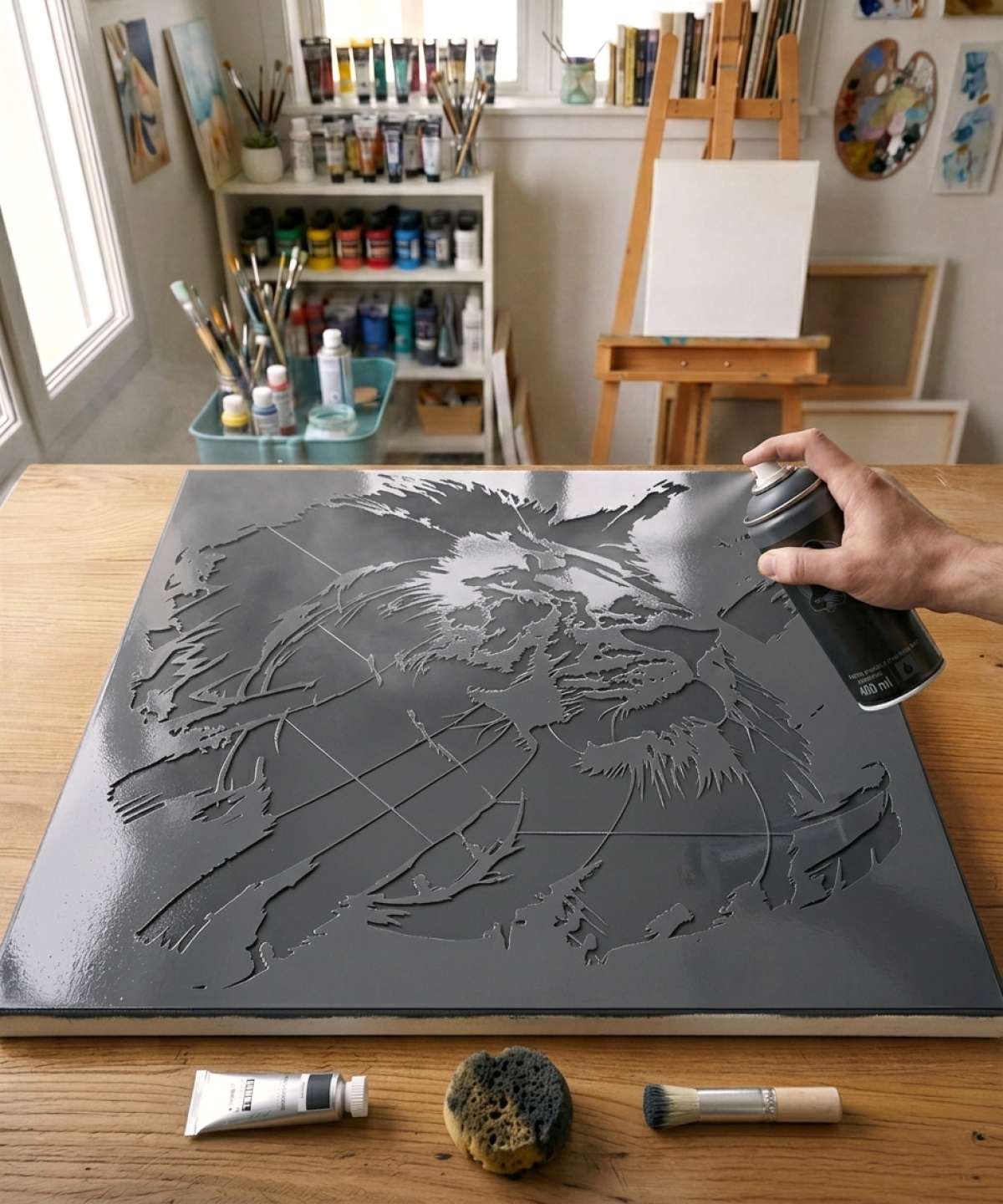 Artistic Lion Head Stencil - A0064
