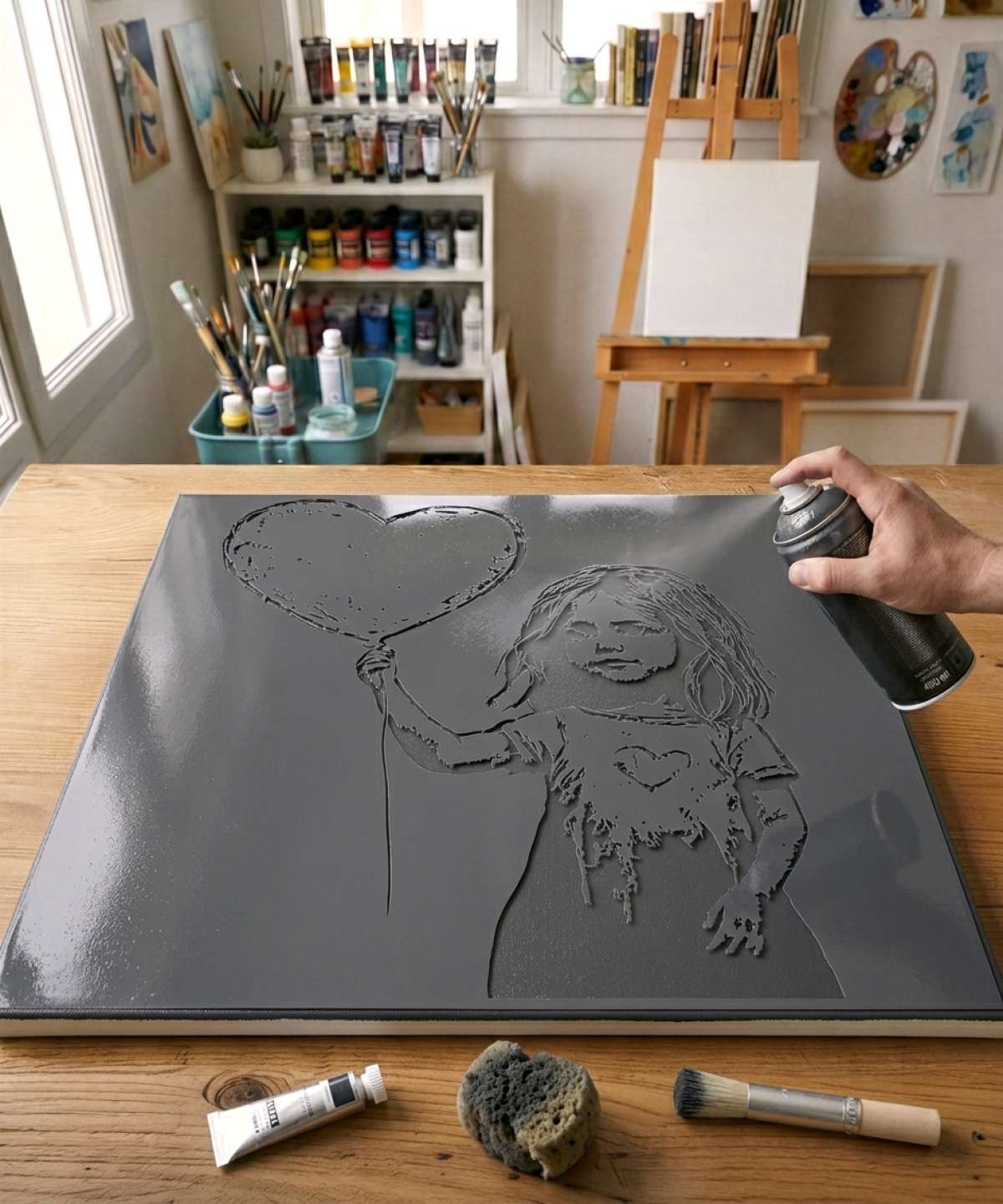 Banksy-Inspired Little Girl with Balloon Stencil: reusable, high-quality, and reversible. Available in multiple sizes to create unique street art masterpieces.