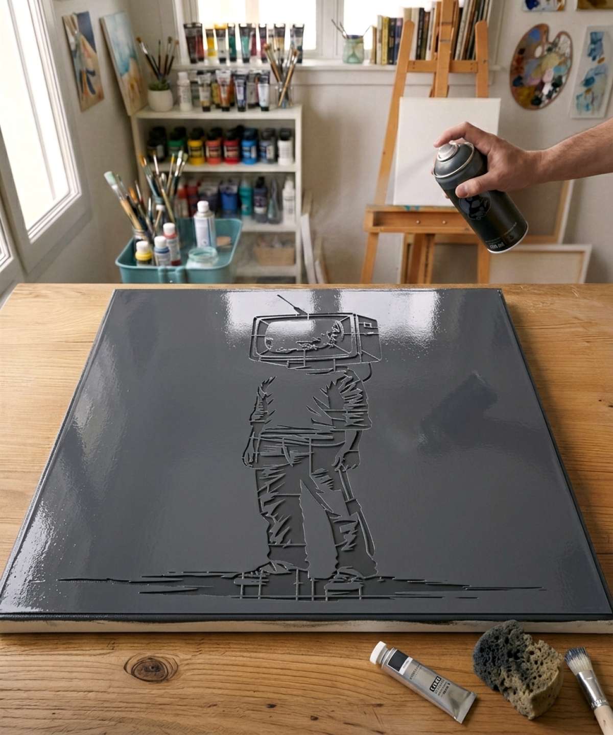 Child Silhouette TV Head Stencil - SA0031