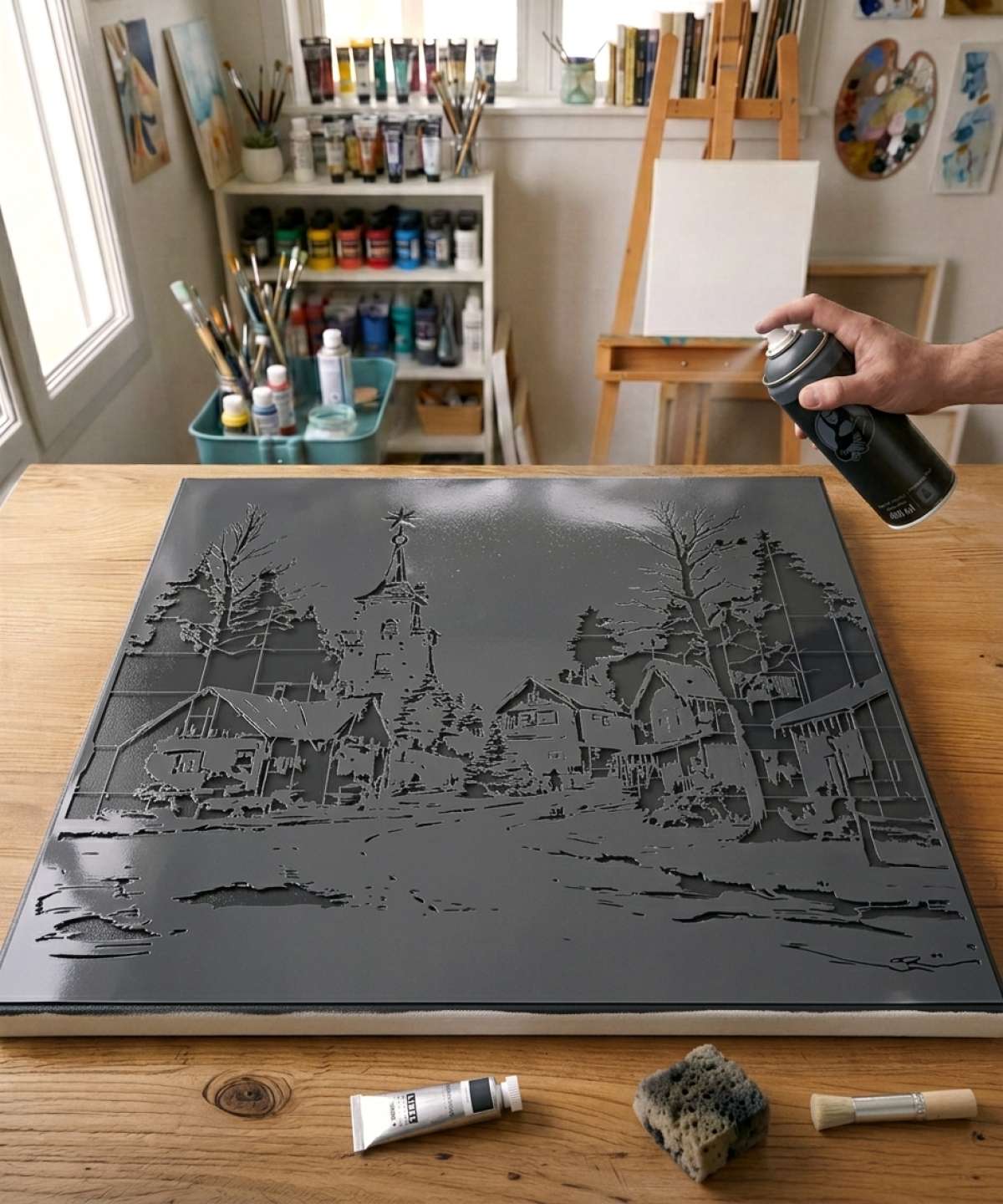 Christmas Village Stencil: Add a festive touch to your projects with this reusable, reversible, high-quality stencil available in multiple sizes.