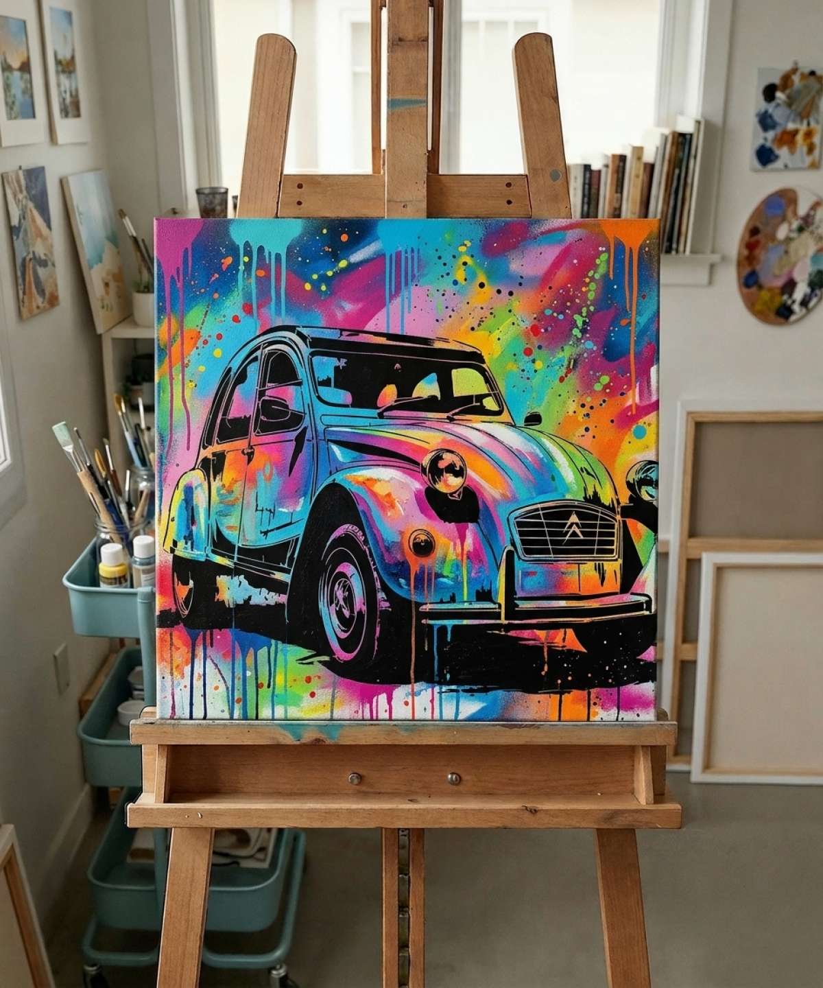 Reinterpreted through the stencil medium, this 2CV is no longer just a vintage object—it becomes a graphic muse, a nod to the past reimagined through urban art, a symbol of France and popular creativity.