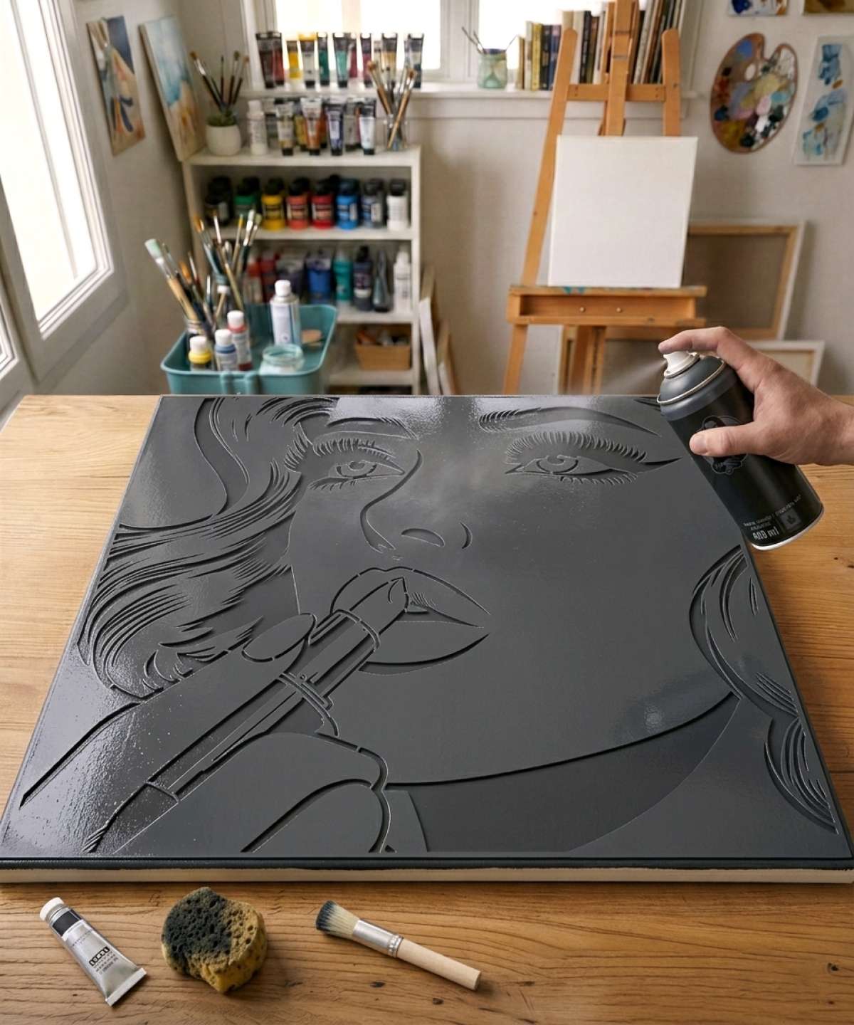 Woman with Lipstick Comic Book Stencil - LRV005
