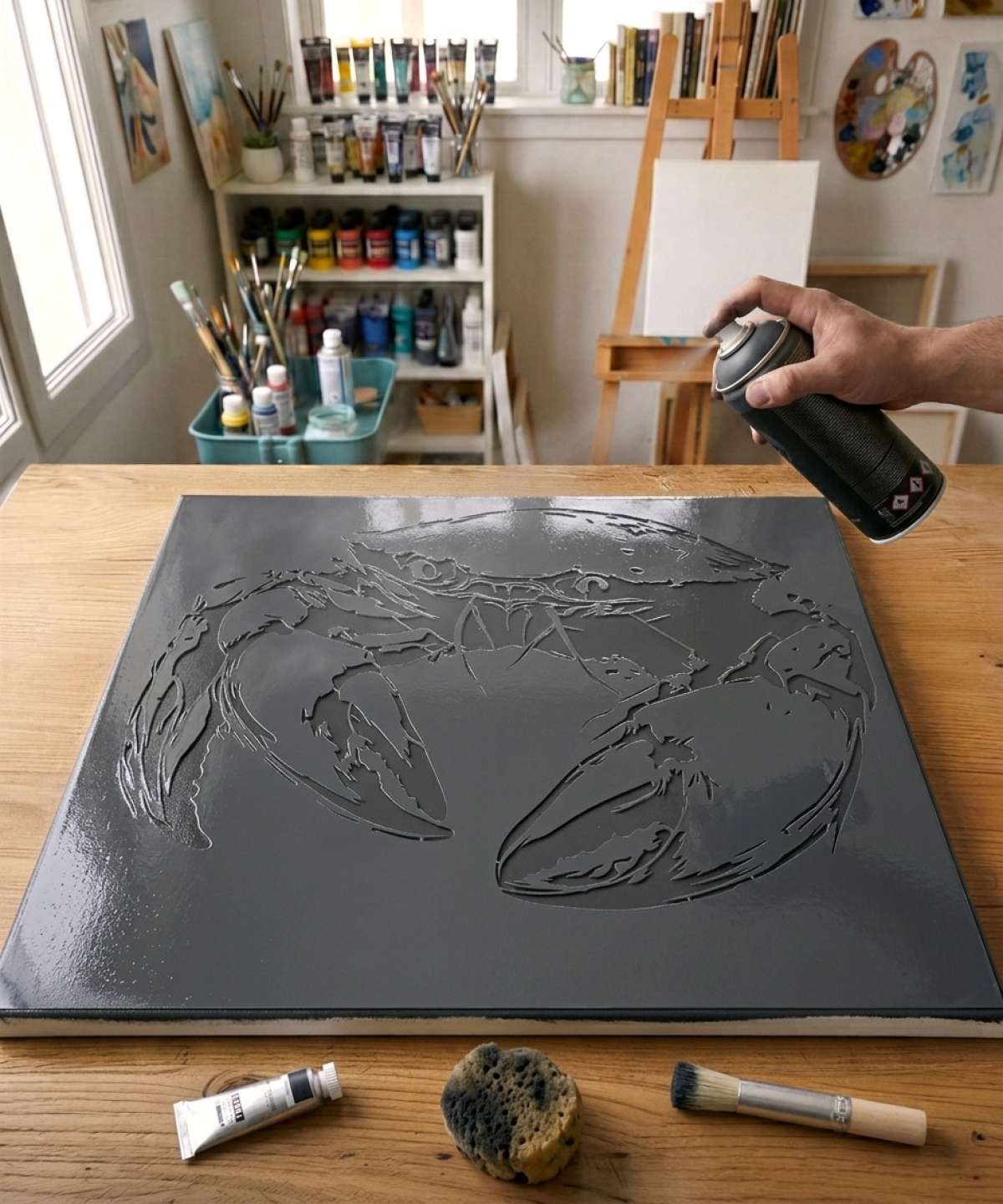 Crabe Stencil, reusable and high-quality, available in various sizes. Ideal for artistic creations on a variety of surfaces.