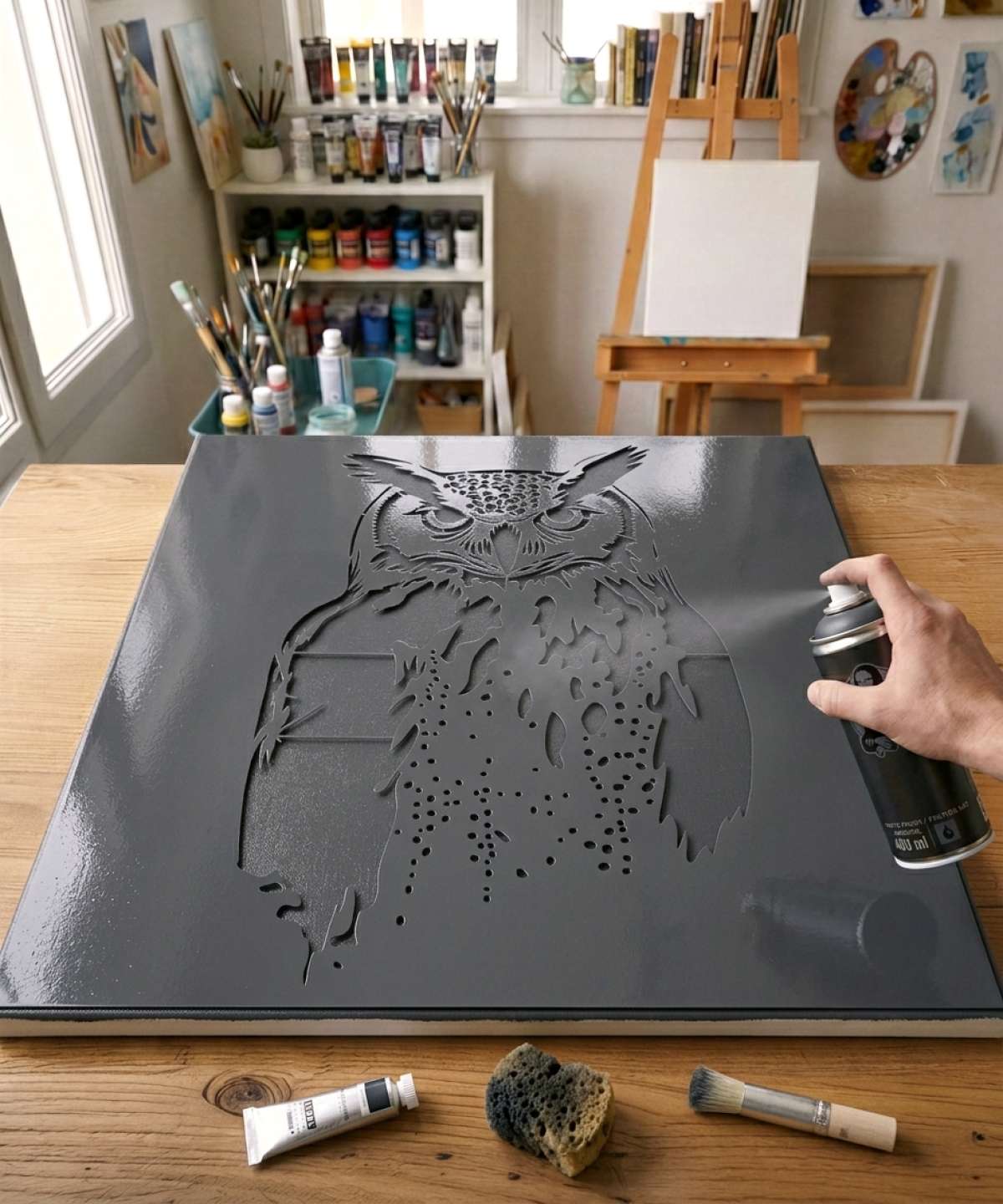 Eagle Owl Stencil for Nature-Inspired Artwork. Durable and reversible design, perfect for artists and creative projects. Capture the spirit of the wild with this majestic forest bird—ideal for painting, décor, and expressive compositions.