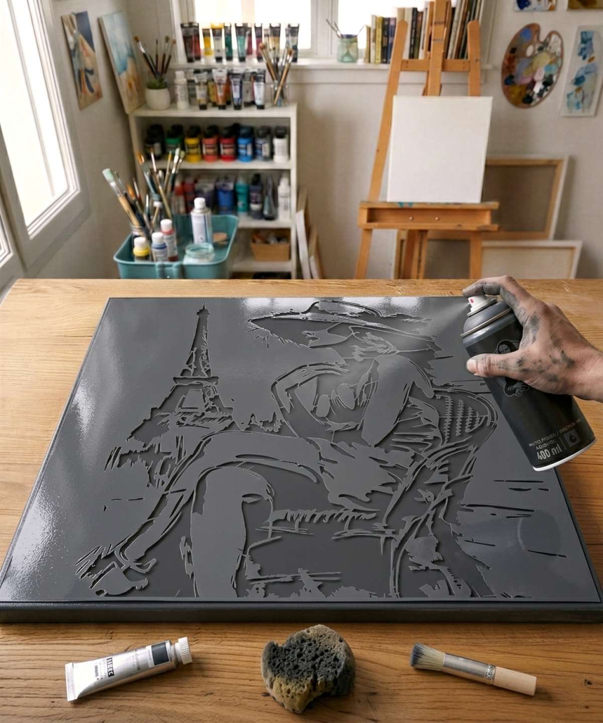This model, part of our pop art collection, stands out for its clean, graphic style, with sharp lines reminiscent of works by the great masters of the genre. Exclusively designed by our team, it captures the spirit of the French capital with both modernity and authenticity. Using this stencil, you can bring vibrant artistic energy to your creations while infusing them with a touch of Parisian magic. Whether you're working on canvases, walls, or everyday objects, this stencil seamlessly fits various artistic styles.