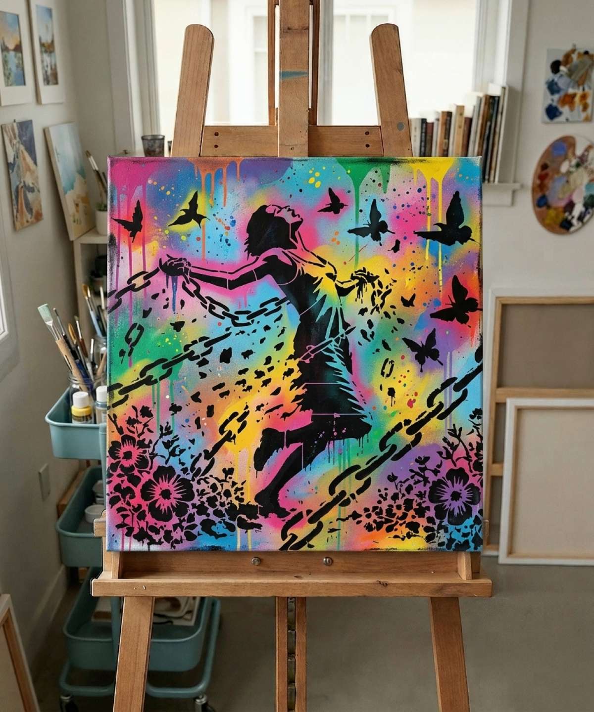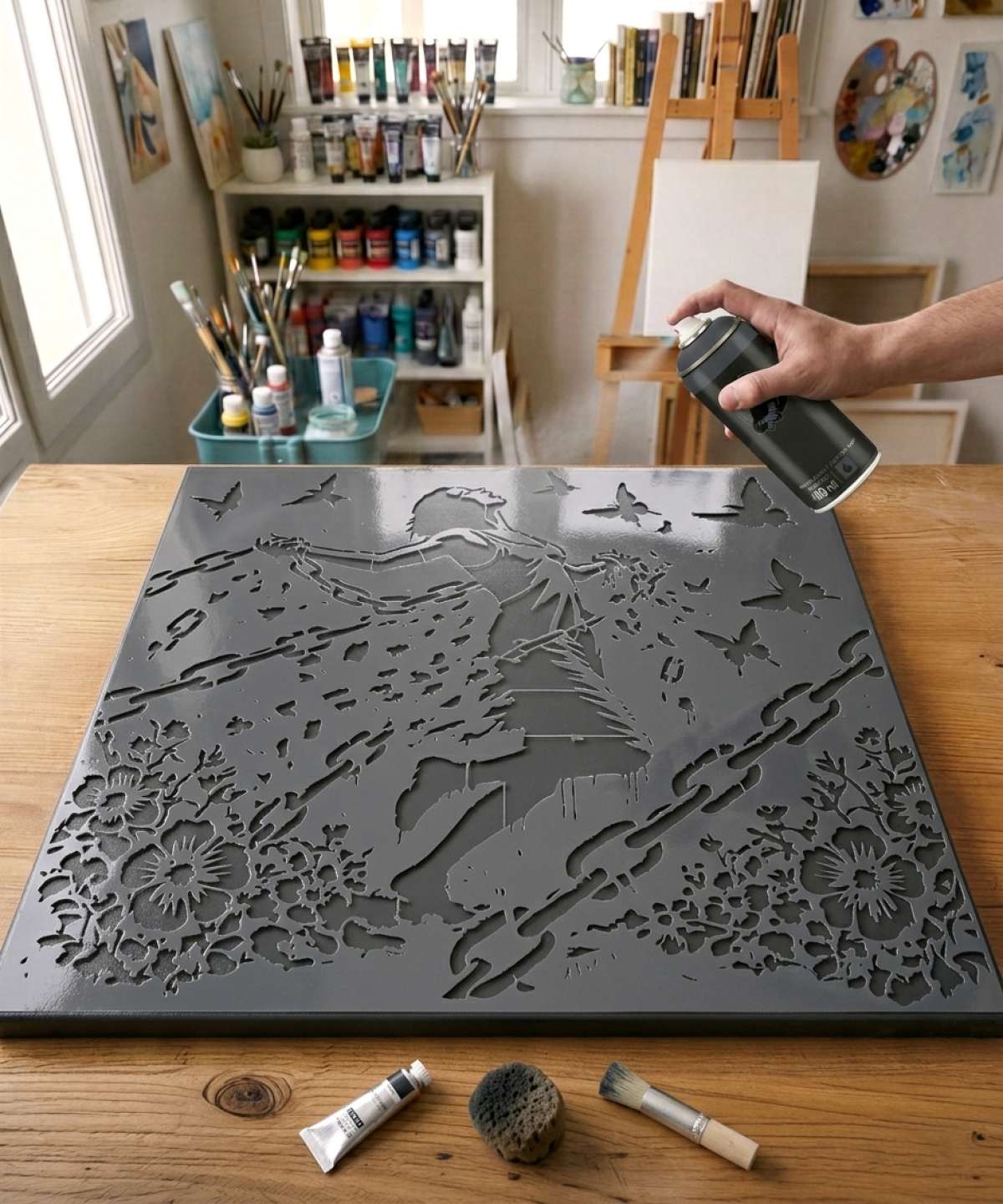 Freed Woman Stencil – A Symbol of Freedom and Strength. Reusable and high-quality, reversible, and available in multiple sizes for artists.