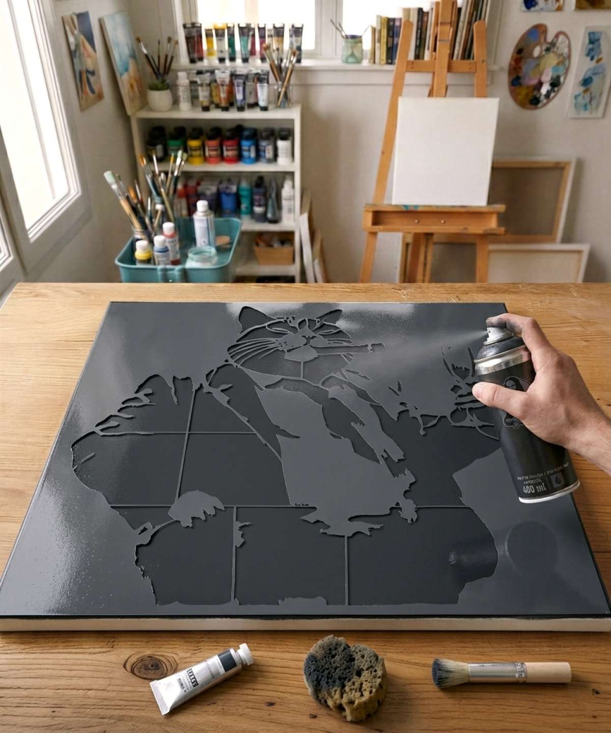 Gangster Cat Stencil - Cigar & Champagne for original painting. Reusable, reversible, various sizes, professional quality guaranteed.