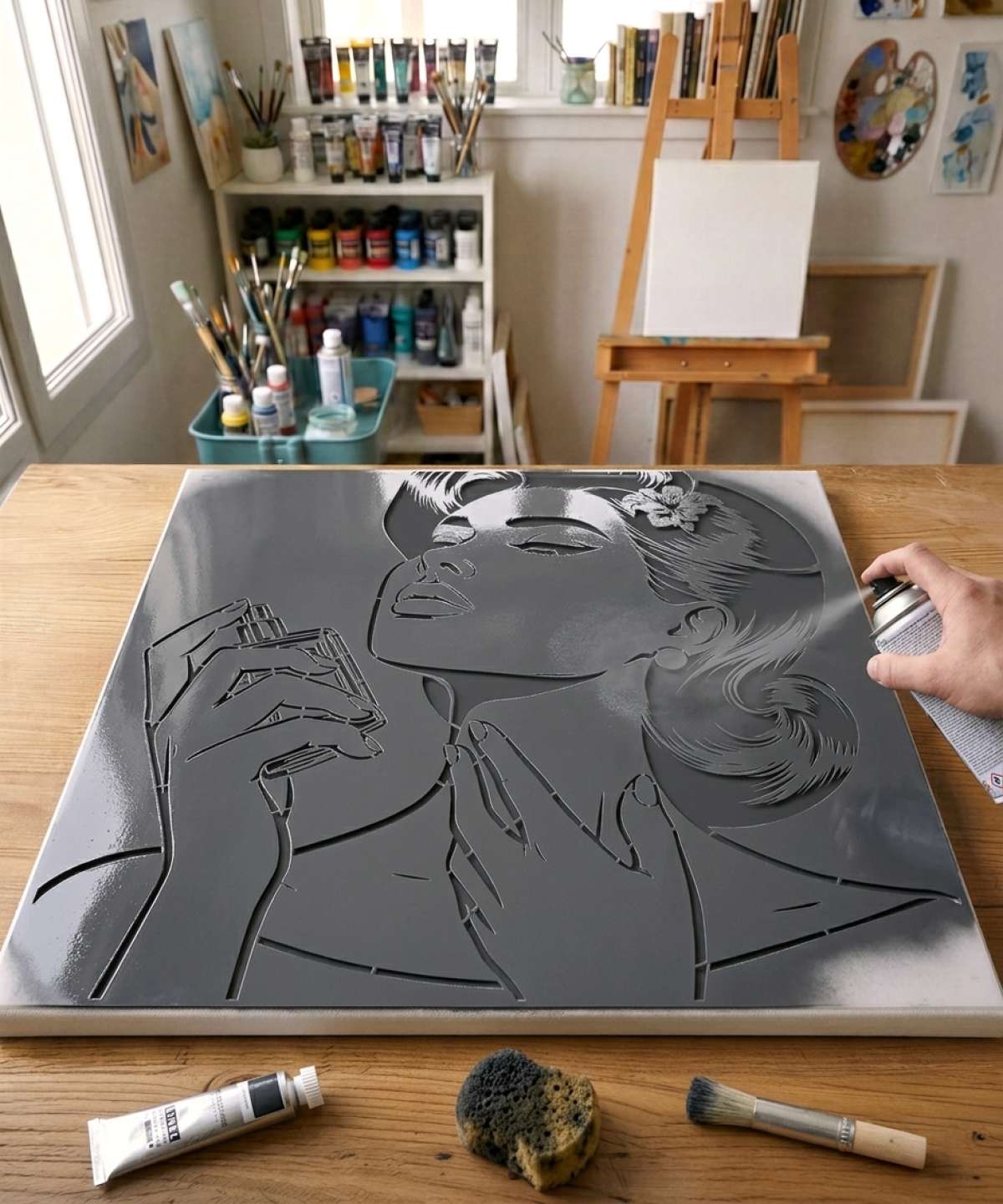 Glamour Style Stencil for Vibrant and Sophisticated Artworks. Ideal for Adding a Pop Art Touch Inspired by Comic Books to Your Projects.