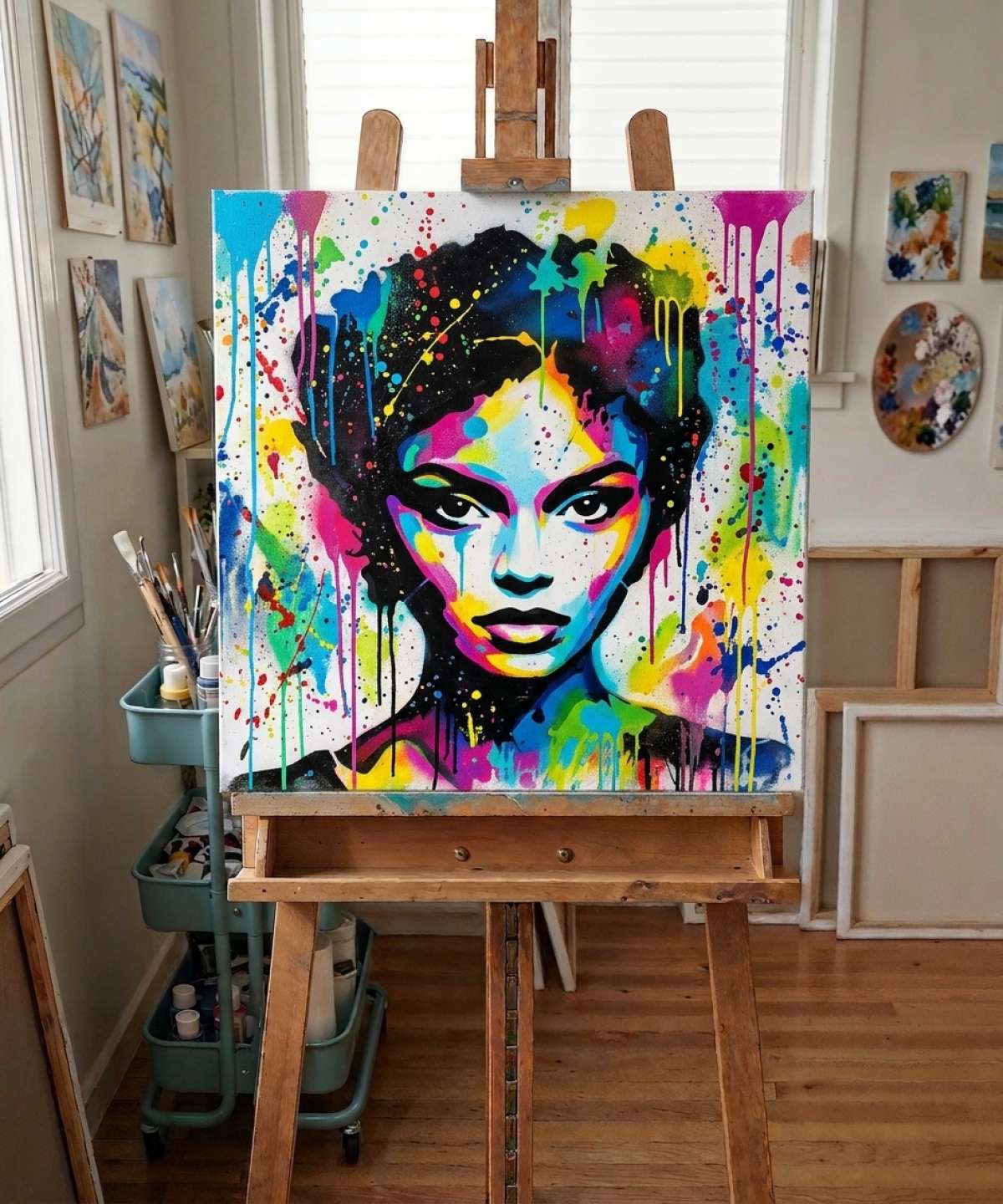This Neo-Stencil woman portrait explores the meeting point between mural art and graphic design aesthetics.