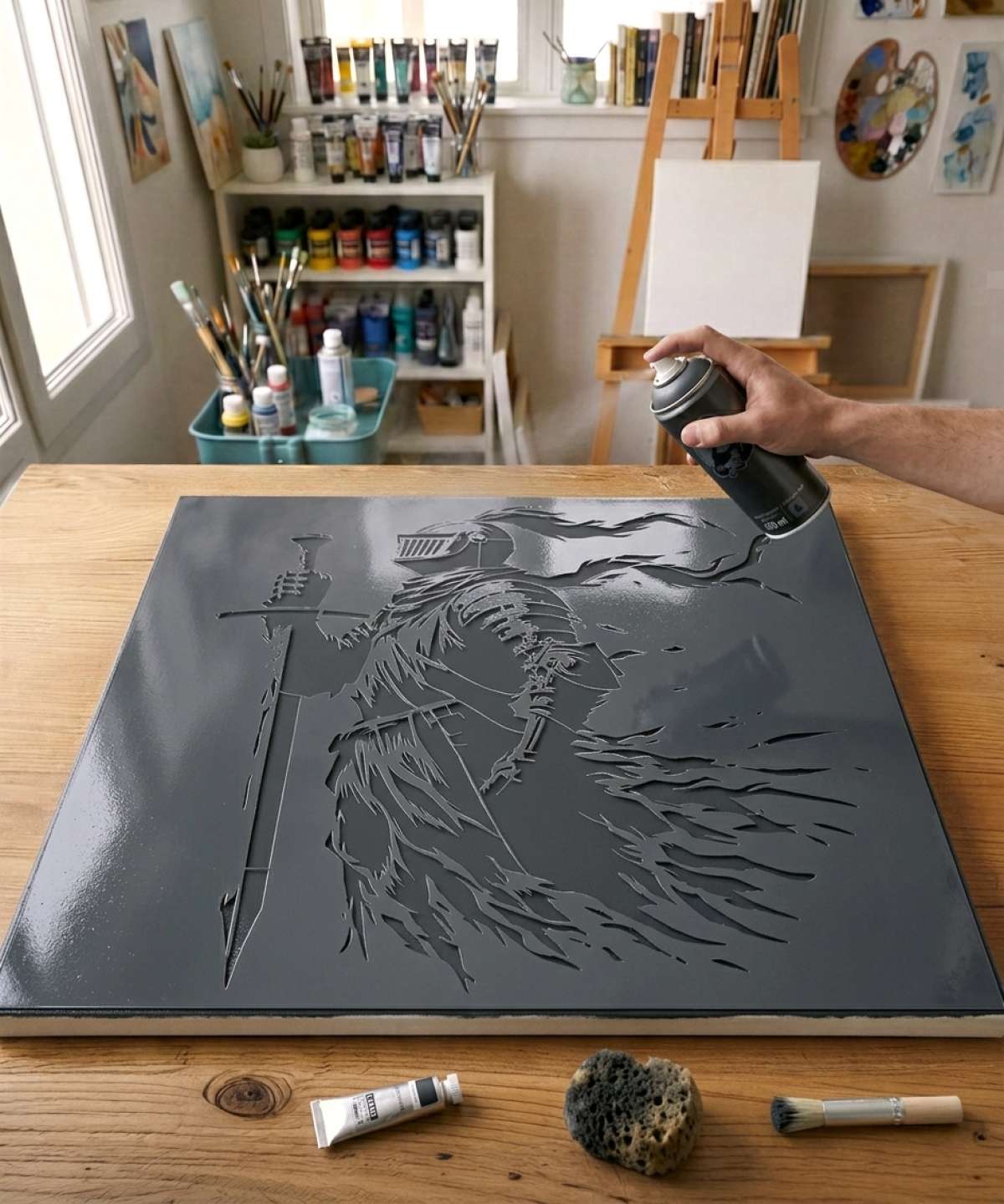 Oathbound Knight Stencil: A powerful stencil of a legendary knight bound by a glorious oath – perfect for fantasy wall decor and medieval-inspired art.