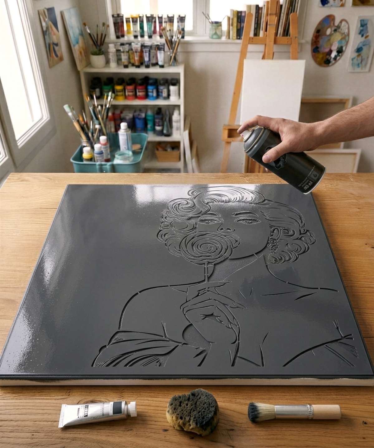 Comic Book Woman & Lollipop Stencil - LPL003