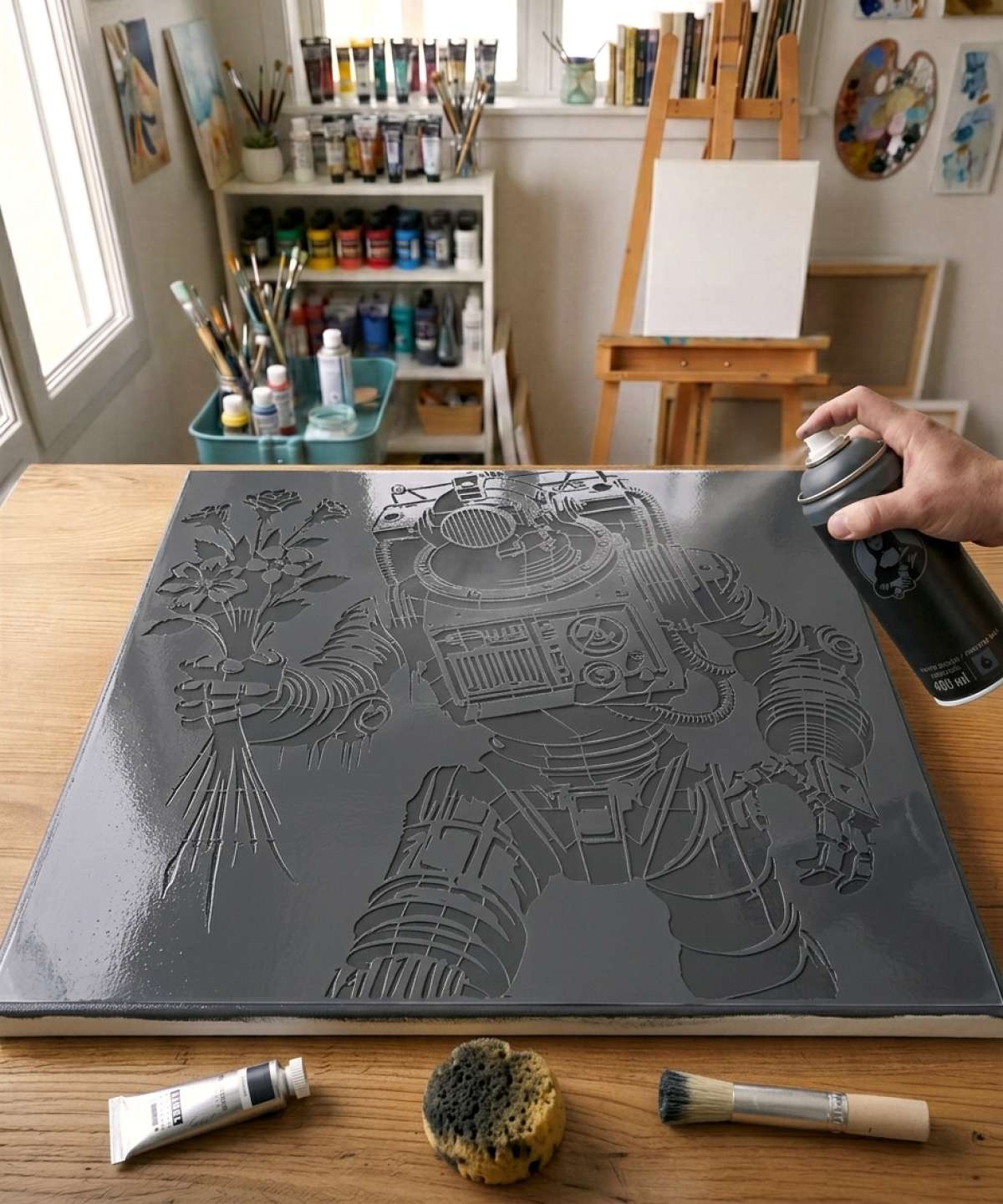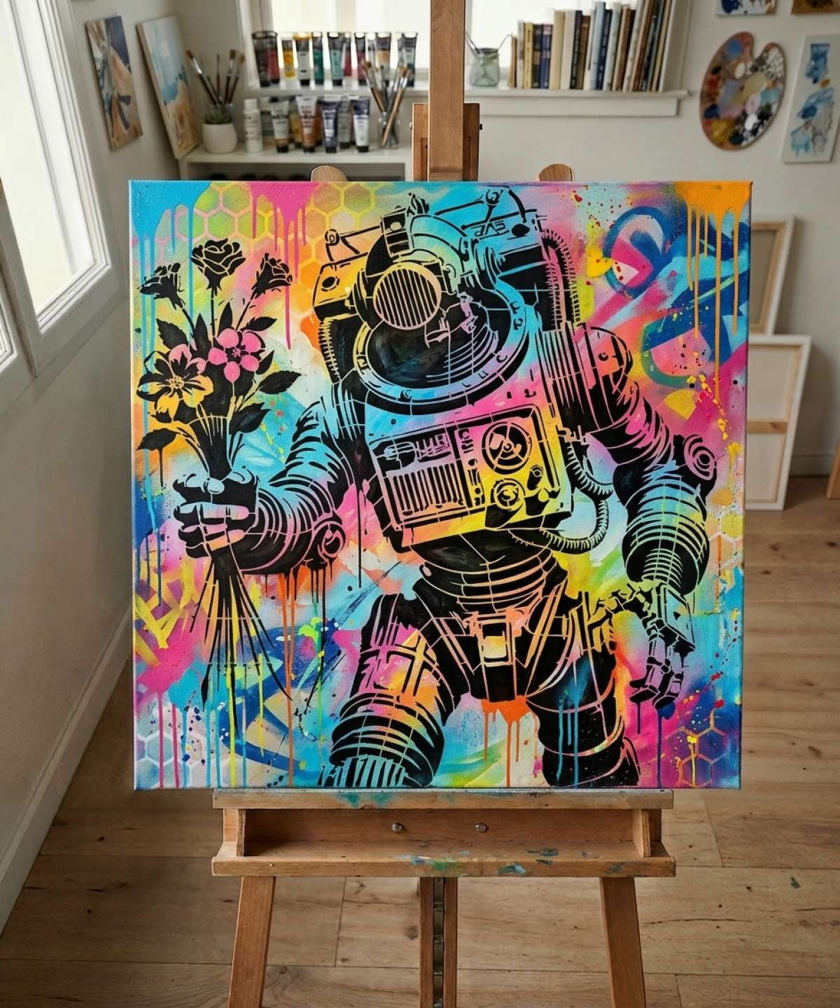 "The Astronaut Robot and Its Flowers" Stencil - SA0009