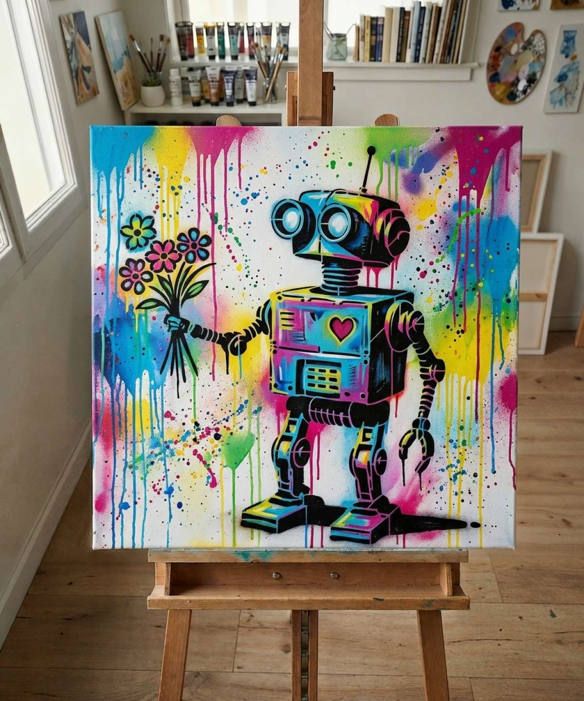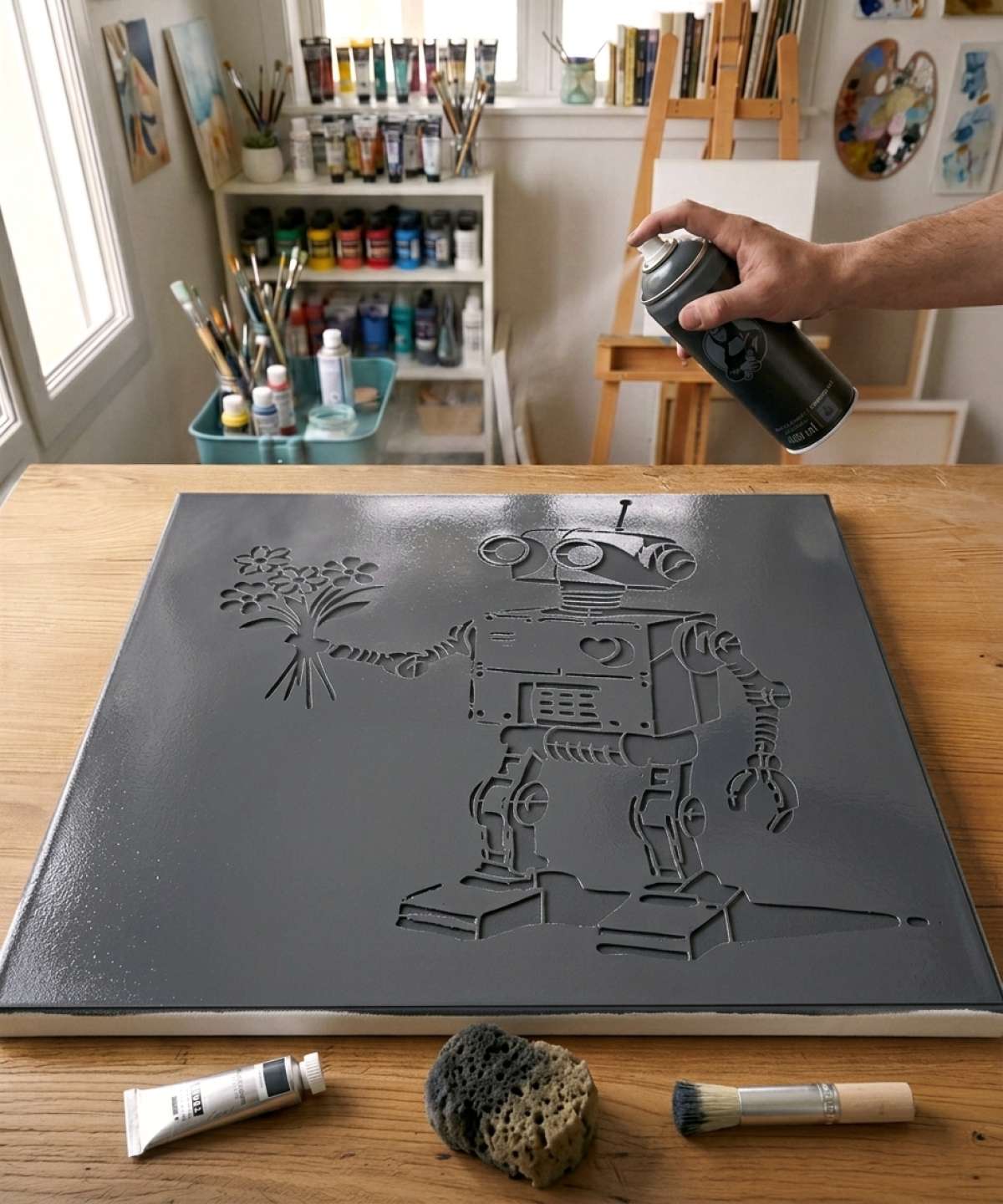 "The Vintage Robot and Its Flower Bouquet" Stencil - SA0010