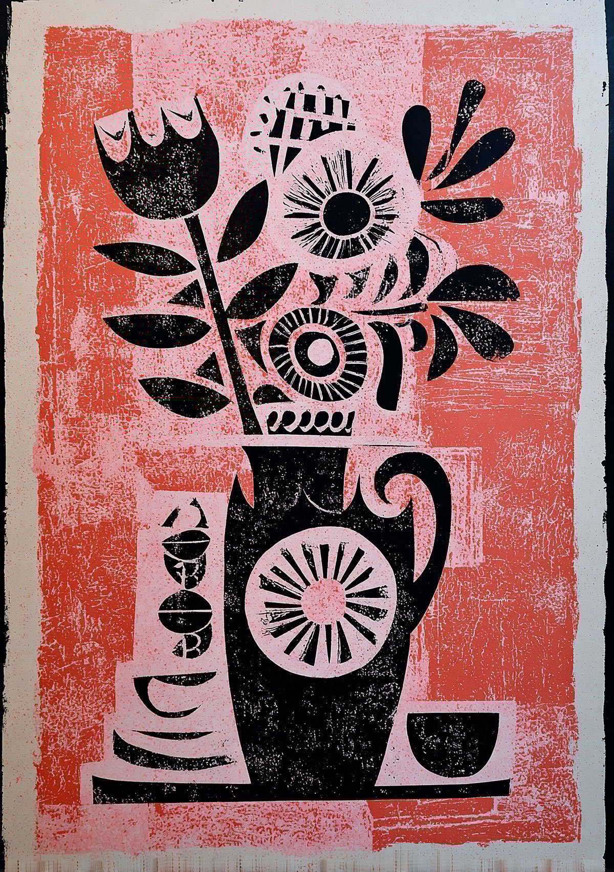 A stylized floral still life inspired by decorative modernism and 20th-century illustration - a bold graphic composition influenced by Matisse-Dufy and contemporary artisanal aesthetics.