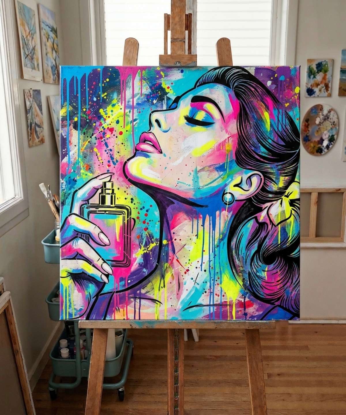 Woman with perfume stencil. Add a touch of glamour and sophistication to your creations with this exclusive pop art-inspired design.